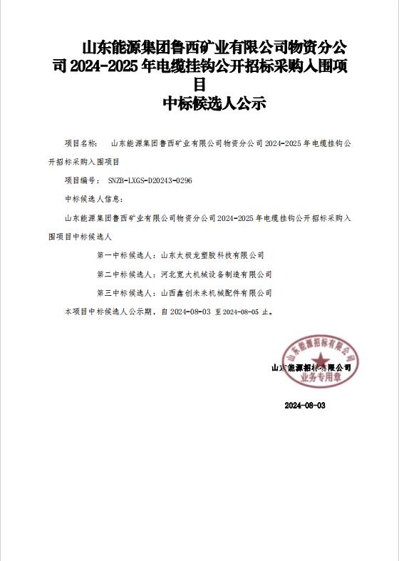 山東能源集團(tuán)魯西礦業(yè)2024-2025年電纜掛鉤項目中標(biāo)